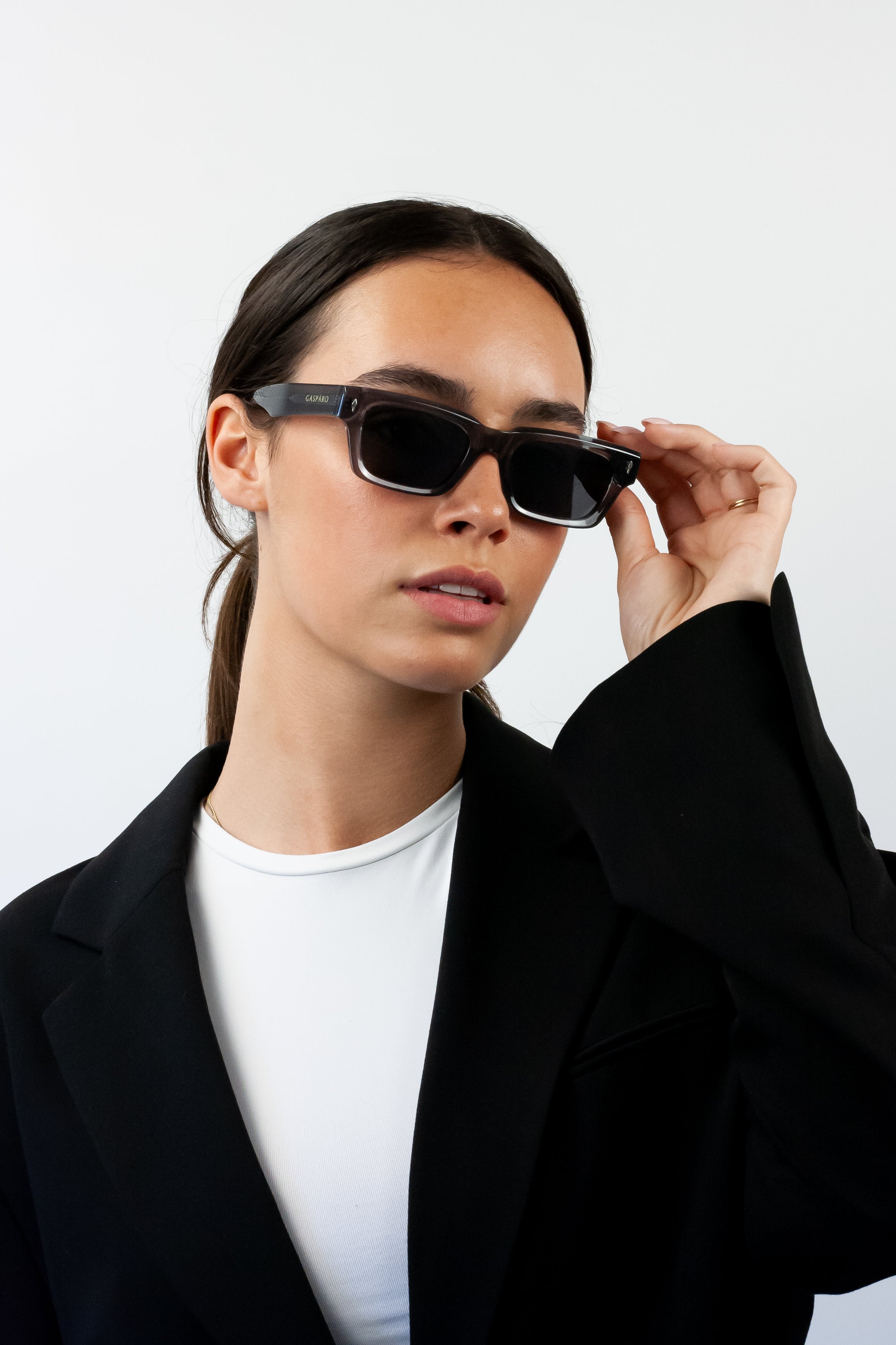 Introducing Lavoro — a sleek rectangular frame, meticulously crafted from premium grey acetate. The design blends sophistication with a modern edge, offering a perfect balance of elegance and style. The polarized UV400 lenses provide superior sun protection.